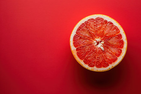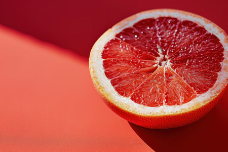 Citrus delight half of a grapefruit on a vibrant red surface with a shadow, healthy eating and nutrition concept