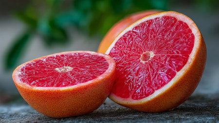 Sliced Ruby Red Grapefruit Halves Displaying Juicy Texture and Vibrant Color
