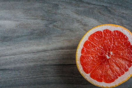 Red Grapefruit on a concrete gray background. The concept of healthy nutrition and diet.