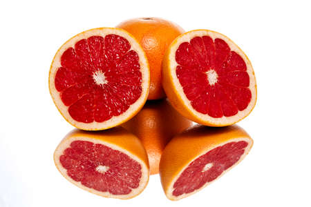 Fresh half grapefruit isolated on white background.
