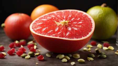 AI Generated. Juicy grapefruit and fresh slice display in a bright and inviting setting