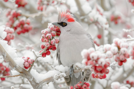 Bohemian waxwing delights winter delicacies frozen rowan berries amidst a snowy landscape