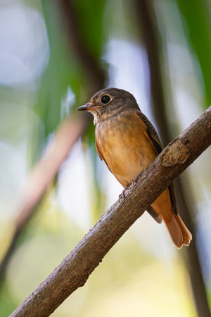beatiful asian brown flycatcher(Muscicapa dauurica) standing on branch in forest
