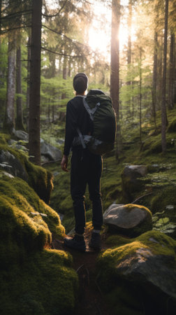hiker exploring lush green forest