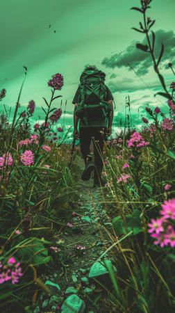 Hikers on a trail lined with blooming wildflowers, nature s palette, exploration and wonder 52