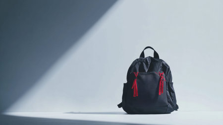 This stylish black backpack features vibrant red tassels, perfect for daily commutes or travel. Its minimalist design emphasizes functionality and modern aesthetics.