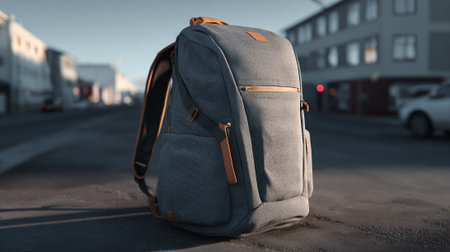 Modern Gray Backpack on Urban Street, Style and Functionality, Outdoor Adventure