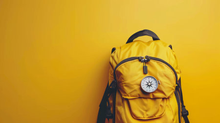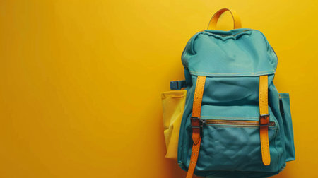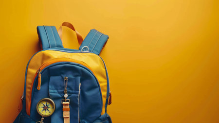 School bag. Backpack with tape dispensers for school on yellow background generative ai