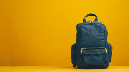School bag. Backpack with staplers for school on yellow background. generative ai
