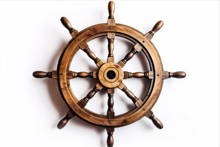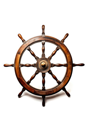 Timeless Charm: Exquisite Wooden Vintage Ship Wheel Gracefully Isolated on a White Background