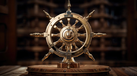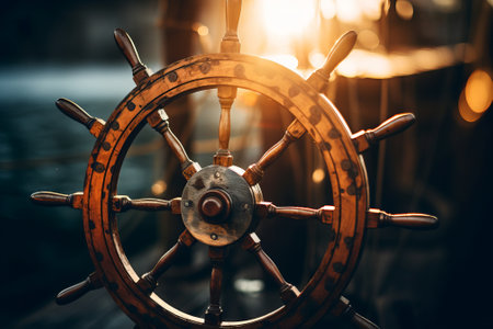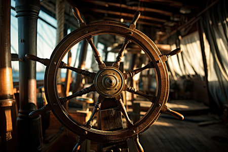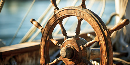 detailed shot of a captains wheel on a sailboat, created with generative ai