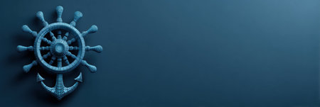 Artistic wheel ships and anchor on a dark blue backdrop, showing innovative design and eco-friendly materials for maritime therapy.