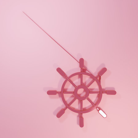 Pink Ship steering wheel icon isolated on pink background. Minimalism concept. 3D render illustration.