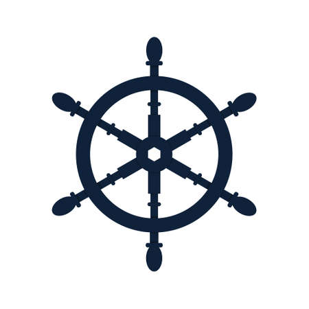 Marine steering wheel. Color vector illustration of a flat style. White isolated background.