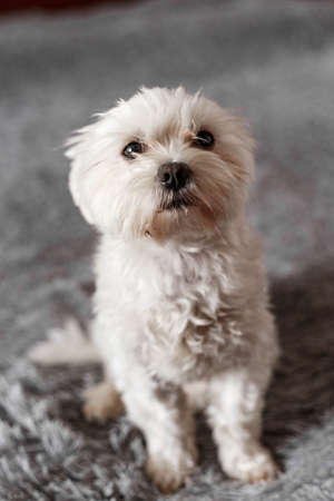 Portrait of a Maltese dog. top view