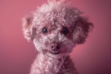 Adorable Fluffy Dog with Curly Fur Against Pink Background Cute Pet Portrait of a Loving Poodle Close Up Shot of Small Puppy with Big Eyes and Sweet Expression Perfect for Pet Lovers and Dog Enthusiasts AI Generative