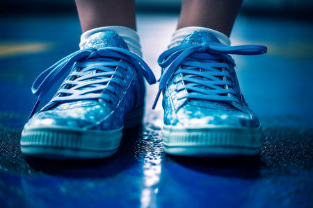 Blue sneakers close-up, focusing on feet in gym shoes AI