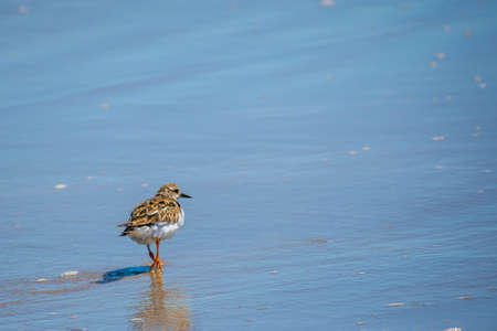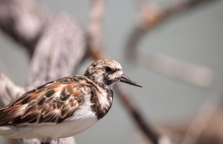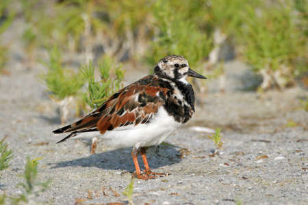 Nesting Ruddy turnstone wading bird Arenaria interpres along the shoreline of Barefoot Beach, Bonita Springs, Florida.