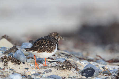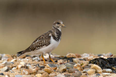 A Ruddy Turnstone Arenaria interpres surveying the beach covered with seaweed