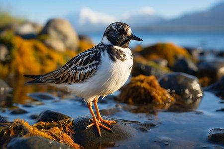 Ruddy Turnstone Arenaria interpres Bird Perched on Stone. Generative AI