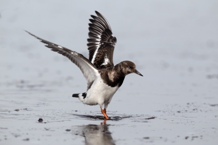 Ruddy Turnstone (Arenaria interpres) wading through the shallow puddles.