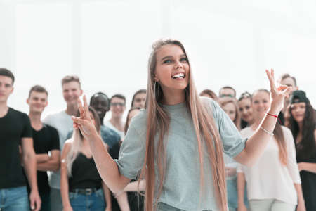girl leader standing in front of her associates