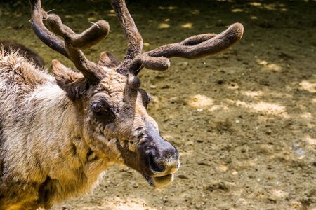 closeup of the face of a Reindeer, popular christmas animal from Europe and America, Vulnerable animal specie