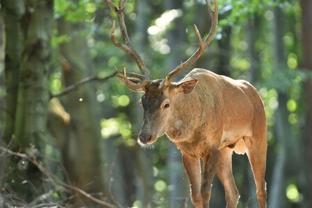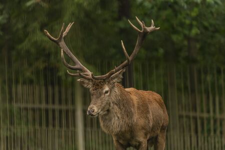 Red deer fallow deer majestically powerful animal in the forest. Animals in the natural forest. The wild nature landscape. Deer garden.