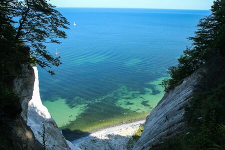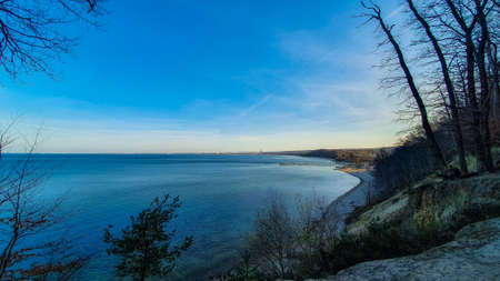Beautiful sea view from the cliff. Top view. Mons Klint. Denmark. Seascape. Nature