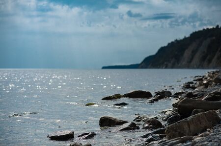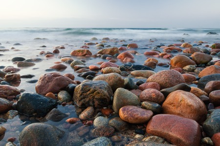 Beautiful seascape with coastal stones in the ocean The Baltic coast, mediterranean sea, Poland