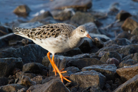 Young Ruff Walking Along The Riverbank