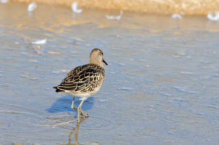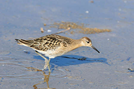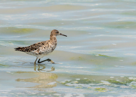 Ruff water bird (Philomachus pugnax) Ruff in water
