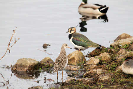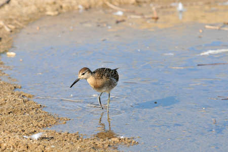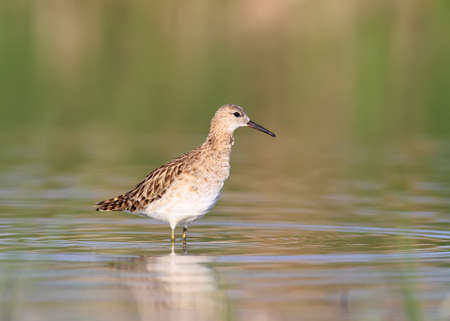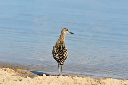 The ruff Calidris pugnax bird on lake