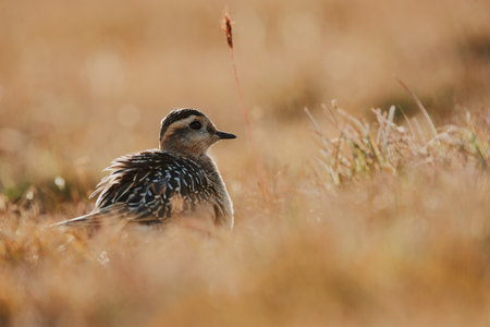 Eurasian dotterel (Charadrius morinellus) photographed in the Italian Alps, in low grass.
