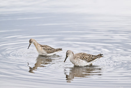 Two ruff foraging in japan