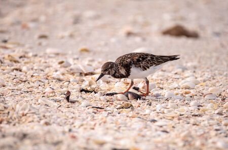 Nesting Ruddy turnstone wading bird Arenaria interpres along the shoreline of Barefoot Beach, Bonita Springs, Florida.