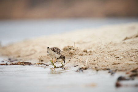 Sanderling looking for insects between algae