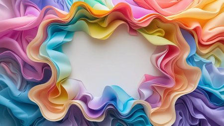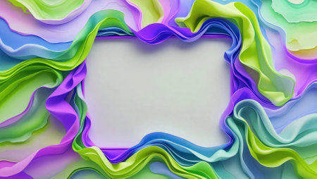 A beautifully designed blank space surrounded by colorful, flowing fabric-like layers, creating a dynamic and artistic frame perfect for creative projects.