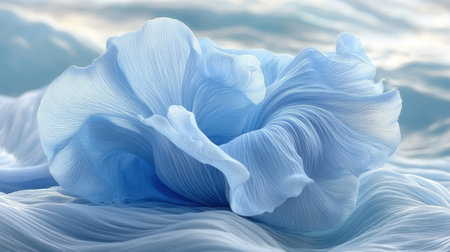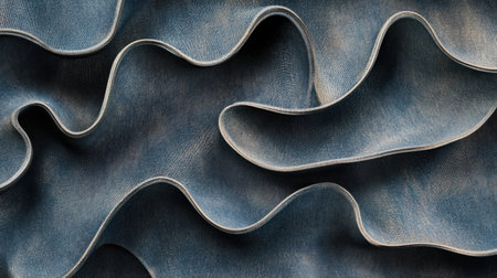 A captivating close-up view of blue denim fabric featuring flowing ruffles and wavy textures, ideal for design projects in fashion and textiles.