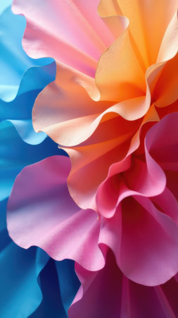 Vibrant abstract folds of pink, orange, and blue colors in soft textures.