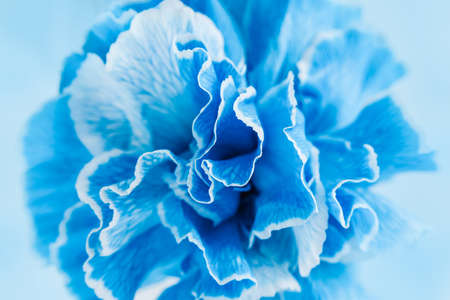 Abstract floral background, blue carnation flower petals. Macro flowers backdrop for holiday brand design.