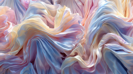 Discover a mesmerizing texture of flowing pastel fabric, creating an ethereal background with soft hues of pink, blue, and cream, perfect for artistic projects.
