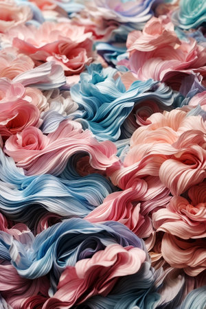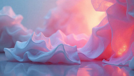 Abstract Background of Flowing Pastel-Colored Fabric, Soft Ruffles and Delicate Textures