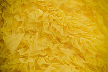 Abstract colorful fabric with soft flowing layered texture in pastel yellow orange and pink shades. Elegant decorative background for design
