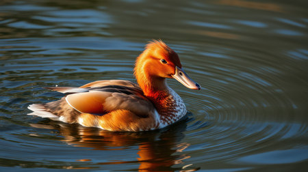 Colorful duck gracefully swimming on a calm pond during a sunny afternoon in nature