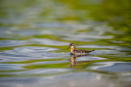 Red-necked Phalarope - Phalaropus lobatus small bird, breeds in the Arctic regions of North America and Eurasia, is migratory, spends the winter at sea in tropical oceans. Iceland.