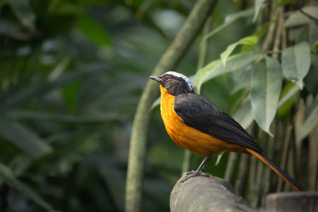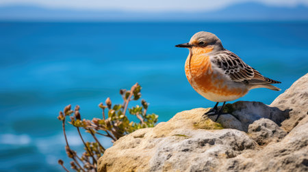 Portrait of a beautiful bird with orange and blue plumage in the nature