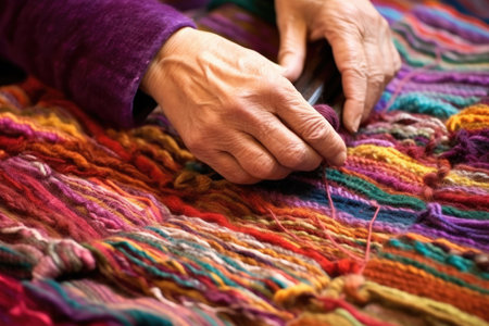 detail of skilled craftsmanship in woven carpet, created with generative ai