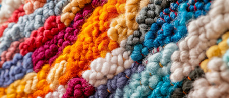 A vibrant explosion of color and texture, this detailed shot of a handmade textile showcases a rich tapestry of interwoven threads.