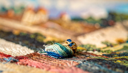 Capture the essence of textile artistry with vibrant yarns and a detailed woven fabric, perfect for creative projects and inspiration in crafts.